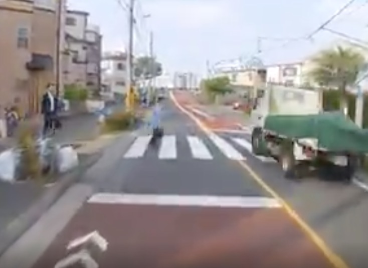 横断歩道で一時停止した車に、後続車が気づかなかった場合にどうなるか、以下の4秒の動画をご覧ください。(@shinori_rgkさんのツイートより)